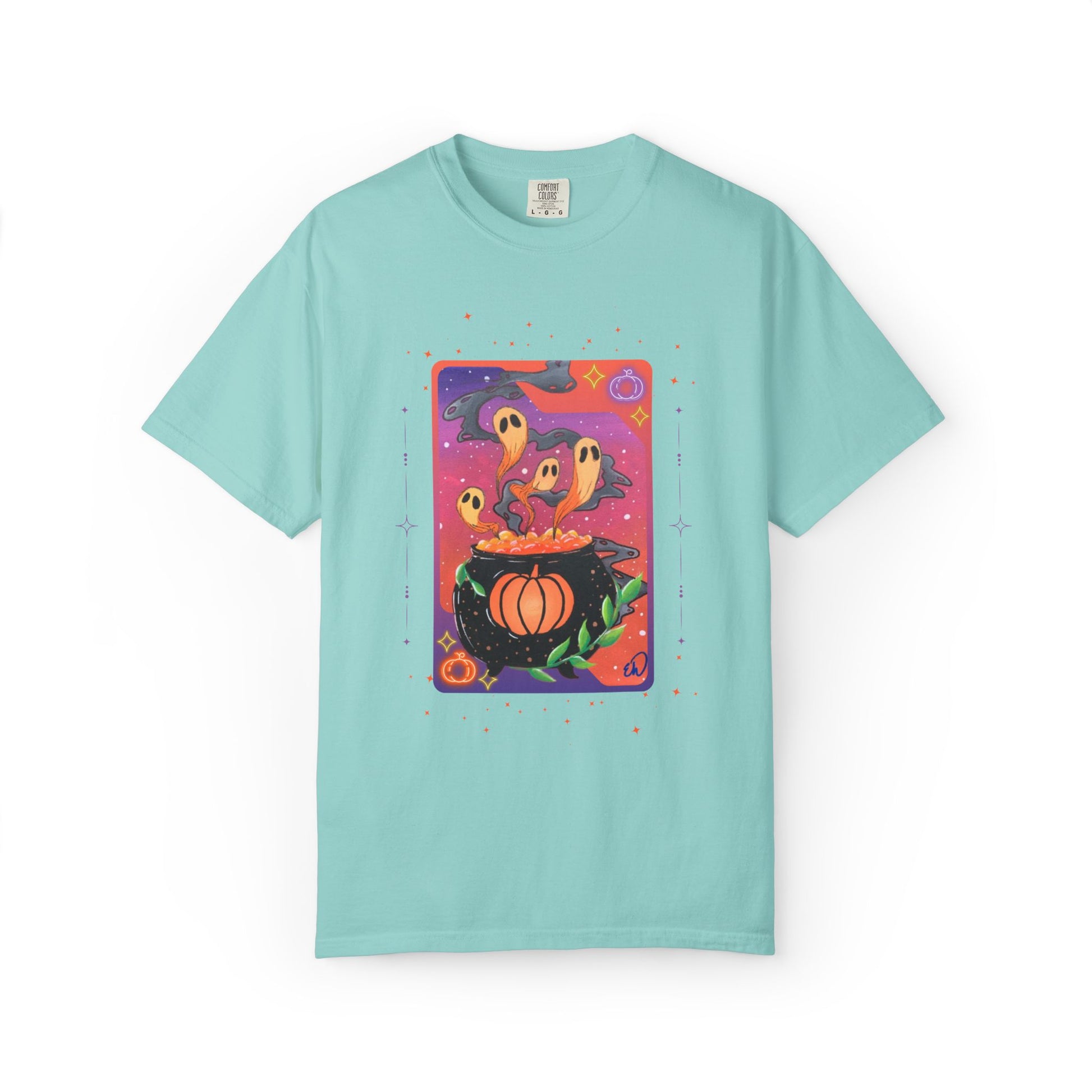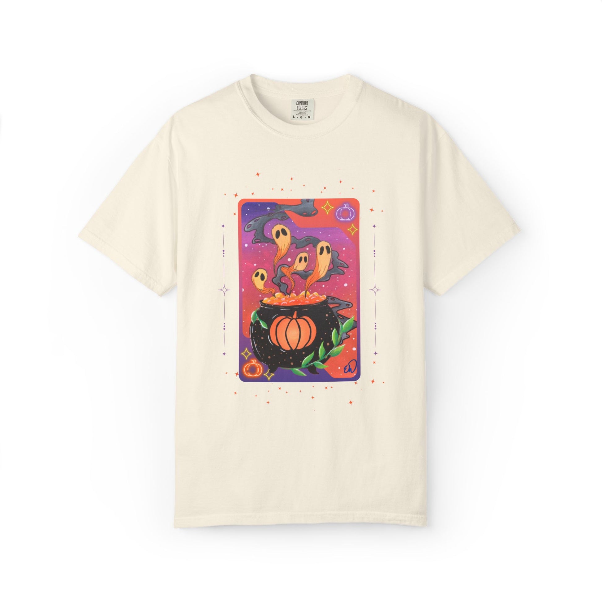 Illustrations created by Sabtiehl Studios. Stand out with a unique piece and blend in to any Fall themed outing. This soft-washed, garment-dyed fabric brings extra coziness to your wardrobe while the relaxed fit makes it an excellent daily choice. The double-needle stitching throughout the tee makes it highly durable while the lack of side-seams helps the shirt retain its tubular shape.